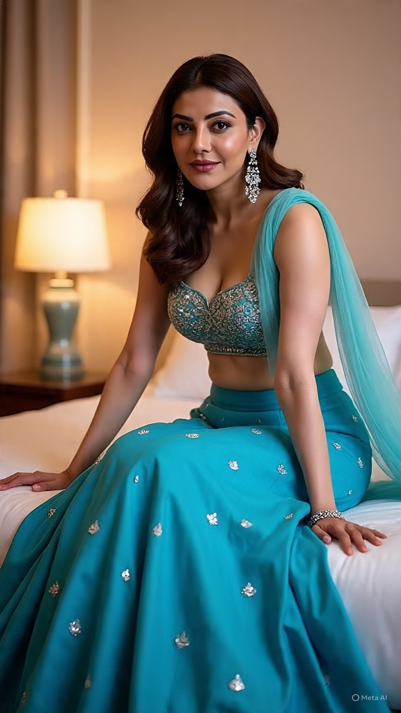 Explore a glamorous collection of Kajal Agarwal AI-generated images in blue dress, highlighting her charm, elegance, and modern fashion style.