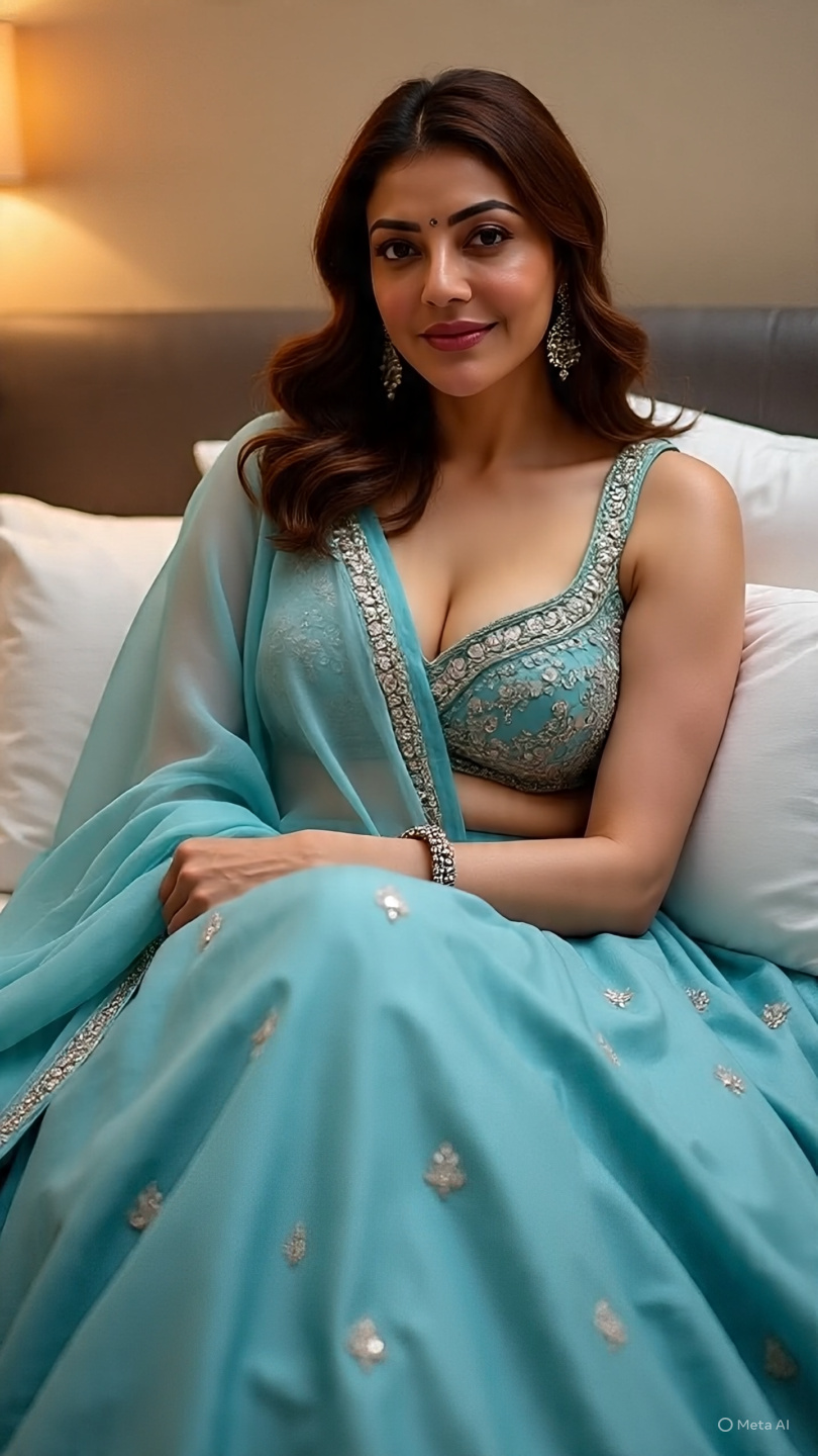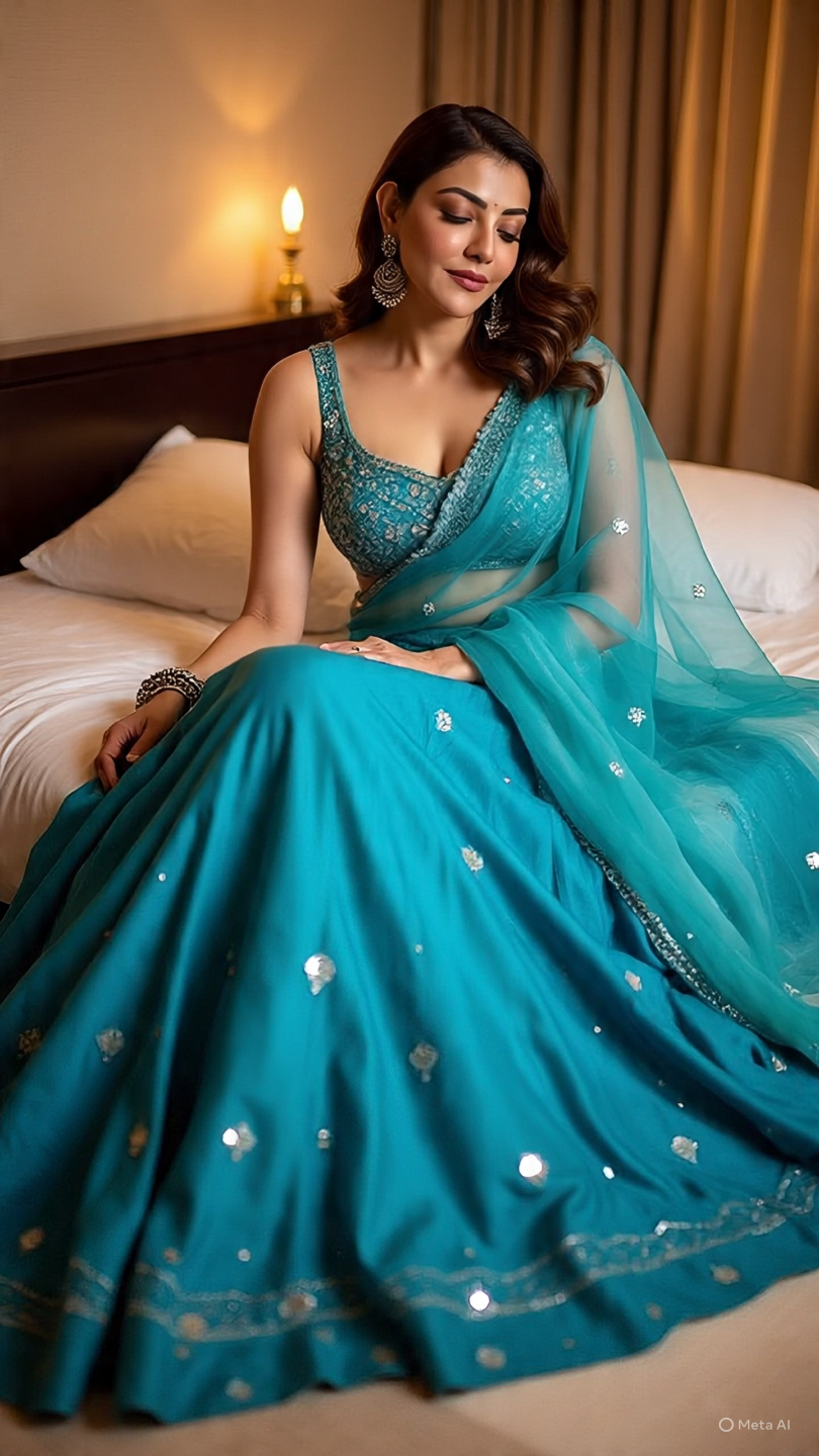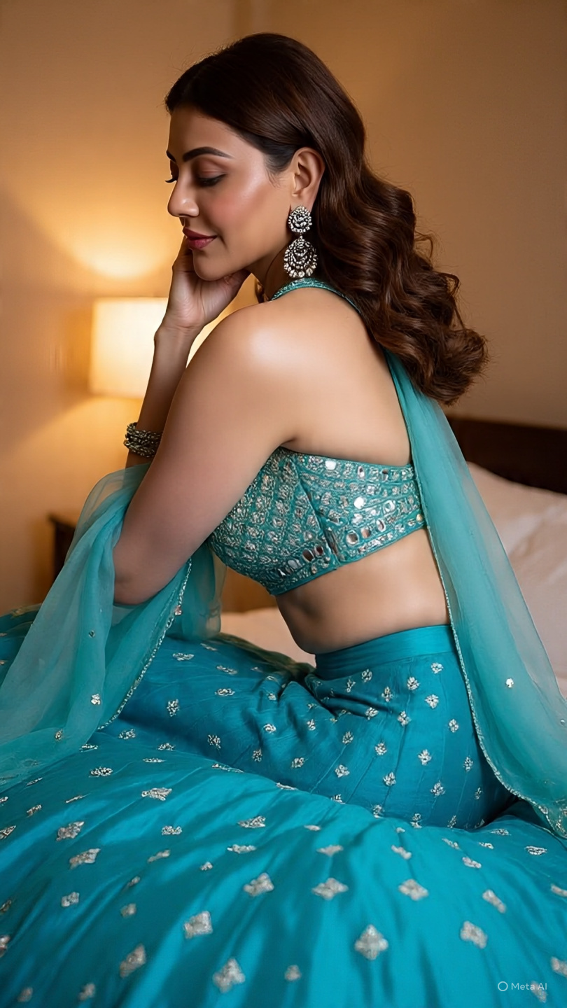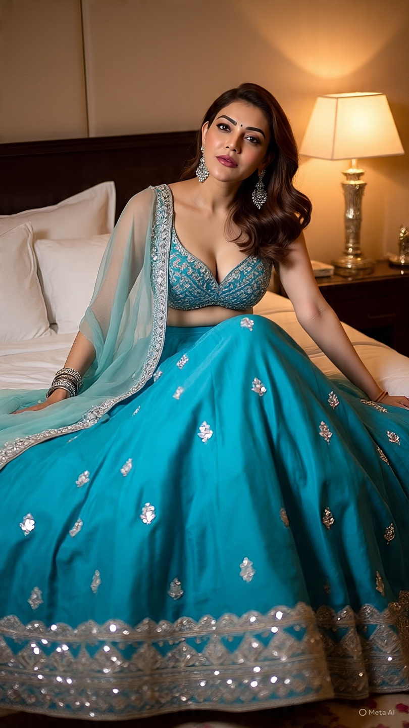 Whether it’s party wear, casual chic, or glamorous evening gowns, this Kajal Agarwal AI blue dress collection brings a mix of style and sophistication.
