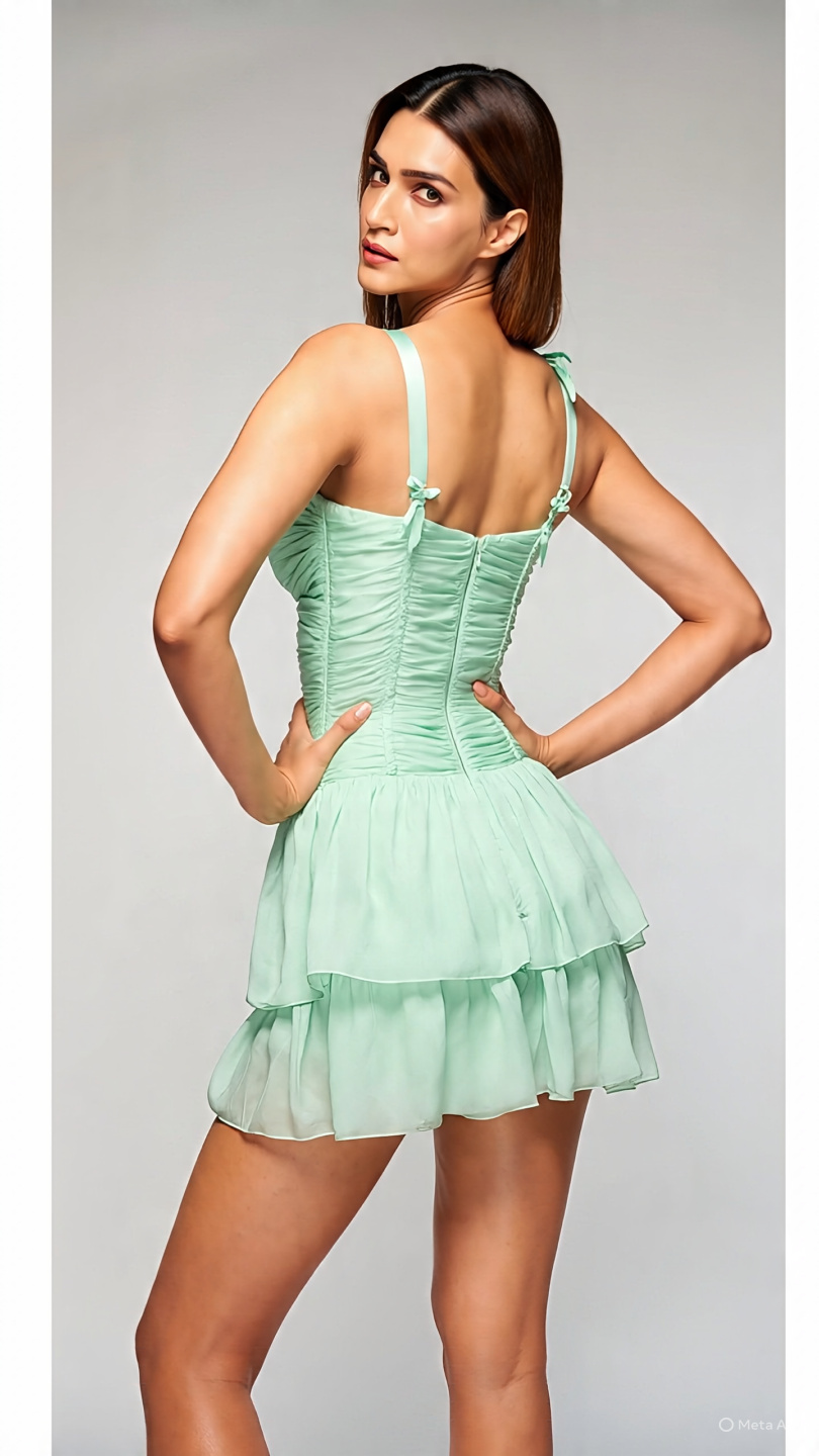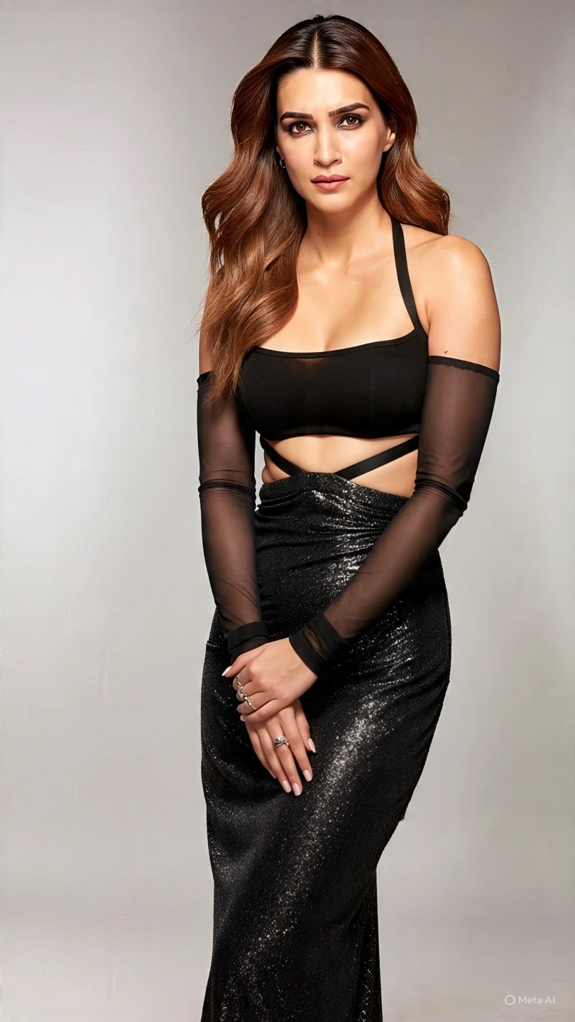 Enjoy beautiful AI images of Kriti Sanon in party wear, gowns, short dresses, and chic modern looks. Perfect for fans who love her fashionable western wear style.
